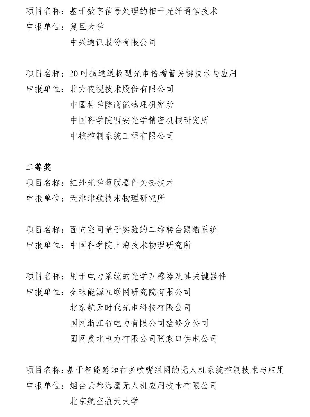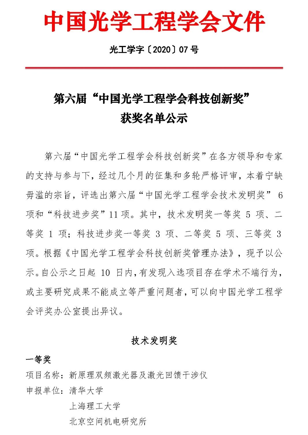 第六届“中国光学工程学会科技创新奖” 获奖名单公示